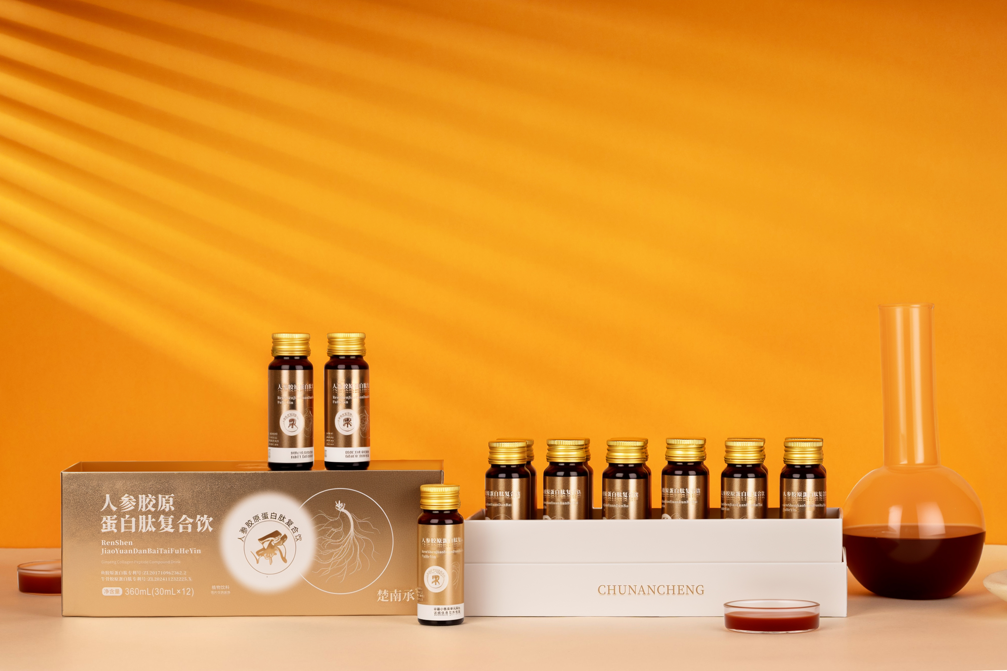 针对职场人士与爱美女性“疲惫感累积、肌肤状态下滑、面色暗黄、毛孔粗大”的痛点,这款产品以5重胶原蛋白肽、谷胱甘肽、麦角硫因(牛肝菌提取物)、虾青素(雨生红球藻)成分为核心,复配人参、玉竹、黄芪等古方成分,通过科学配比促进胶原蛋白合成与吸收。一瓶双效,轻松击退“疲惫暗黄面容”与“内在倦怠”。它富含鱼胶原蛋白肽、弹性蛋白肽等多重胶原,搭配小分子肽技术,精准提升肌肤弹性与紧致度,让肌肤焕发自然光彩。